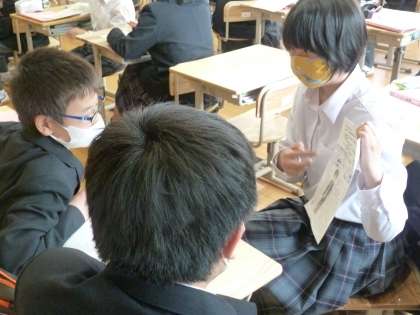 家庭科では密にならないように気を付けながら,コーディネートについて交流中でした。