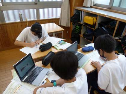 1年生の教室では「サメは胎生?」という話題で盛り上がっている班がありました。