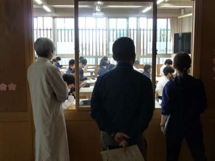 若い先生の研修を兼ねて,先生たちが授業を参観している1年生のクラスもありました。