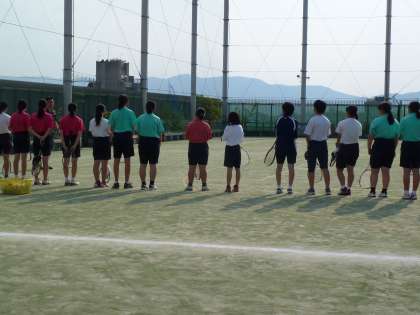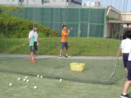 屋上グラウンドは,今日は男女ソフトテニス部が練習していました。