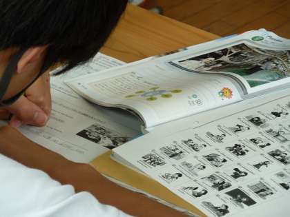 教科書の後ろのページで単語を探している姿も見られましたよ。