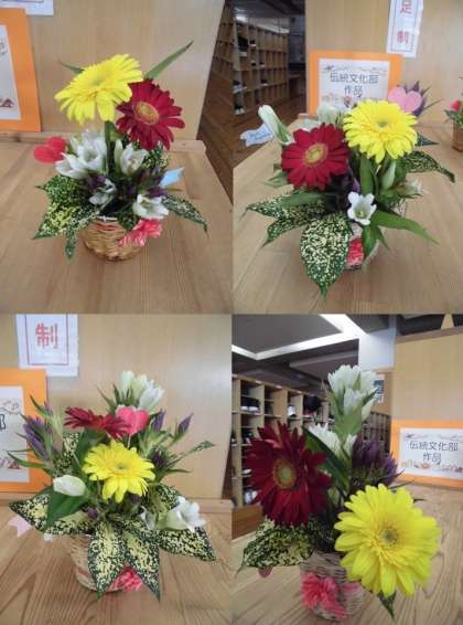 伝統文化部で,文化の部の作品としてフラワーアレンジメントに取り組みました。