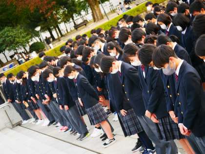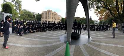 平和セレモニーの後,みんなで折った折り鶴を奉納しました。