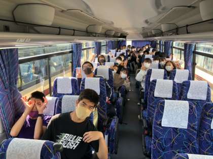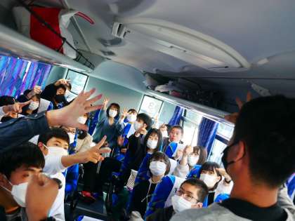 バスの中でじゃんけんゲームをしているクラスもあるようです。