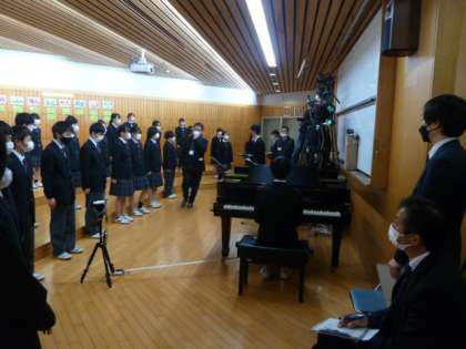 ホールと違って,指揮者・伴奏者に並ぶ位置にカメラマンや審査員の先生が見える距離感。