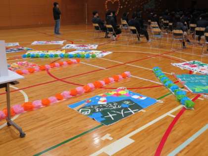 昨日放課後,1,2年生で飾り付けをした体育館。