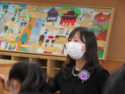 成徳学舎までは,担任の先生の引率で歩いていきます。