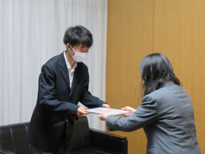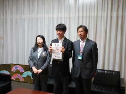 昨年度末に,最優秀作品・地区ガバナー賞をいただいた生徒に,ライオンズクラブの方から表彰状が届けられました。