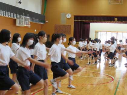 体育館では行進練習。