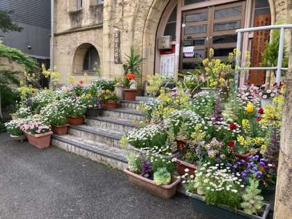 いま,学校前のプランターで咲き始めたマーガレットは,実は成徳学舎のサークル活動で地域の方が育ててくださった苗を分けていただいたものです。