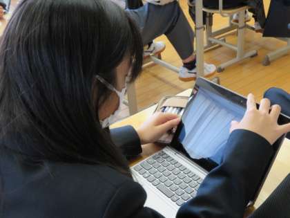 1,2年生はいくつかのアンケートに回答中。