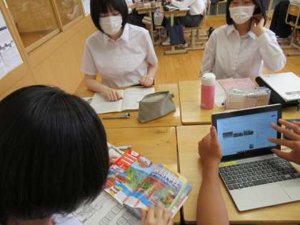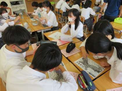 とパンフレットやガイドブックを見ながら食べ物の話で盛り上がっている班があるかと思えば,宮島周辺の地図をたどりながら,行程を確認している班もあります。