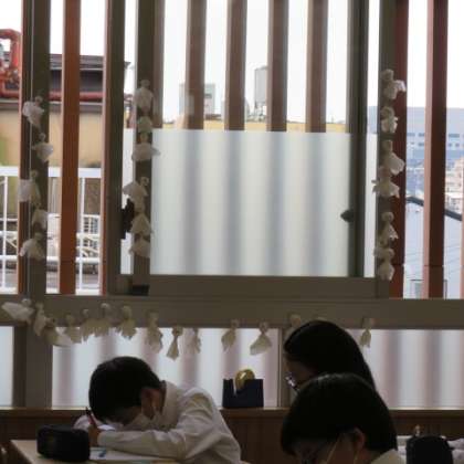 窓枠にたくさんのてるてる坊主が貼られているクラスがありましたよ。