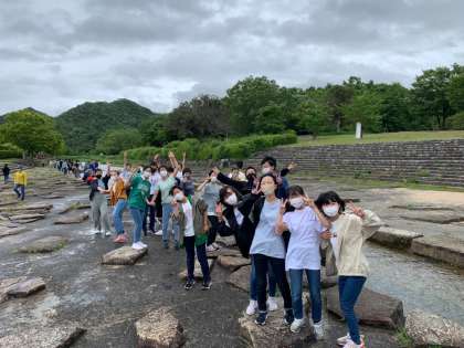 昼食後,自由に時間を過ごしている様子です。雨も上がり,外で過ごしているようですね。大自然に囲まれてのびのびと過ごしています。