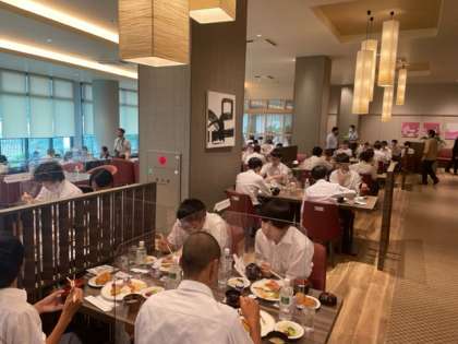 すがすがしい天気に恵まれて,爽やかな朝食の時間を過ごしています。