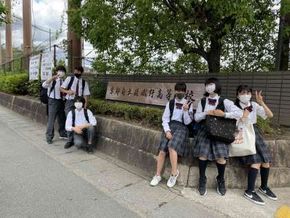 生徒たちが公立高校へ到着だしたようです。この後動物園に向かいます。