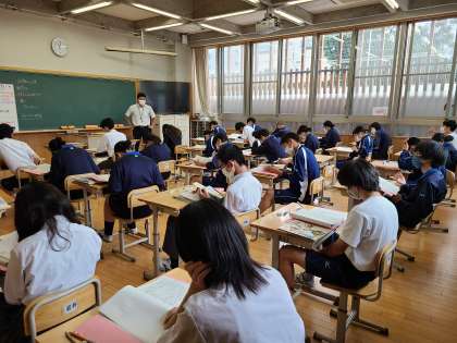 美術のテスト前の3年生です。テストに向かう熱意が沈黙の空気をとおして伝わってきます。本日も残すところあと1教科です。頑張ってくださいね。