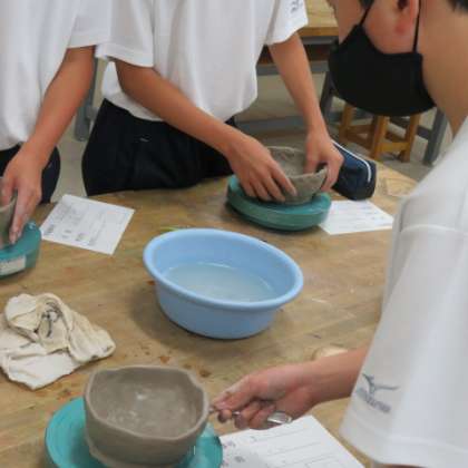 今日と明日,「アトリエいぐれっく」から講師の先生をお招きして,1年生が茶器づくりに挑戦します。