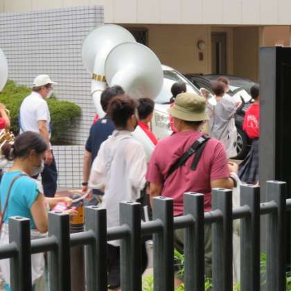 14:00,地域の方,下京保護司会,下京警察署,など続々と集結したところで体育館で出発前の演奏。