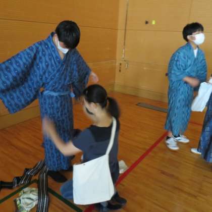 学校での着付けは,男女別にそれぞれ広い場所で行われました。