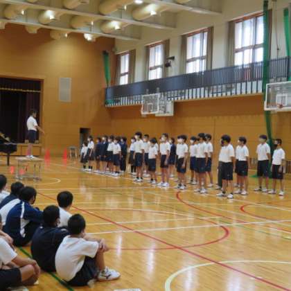 体育館練習が当たっている学年は,本番さながらの緊張感!