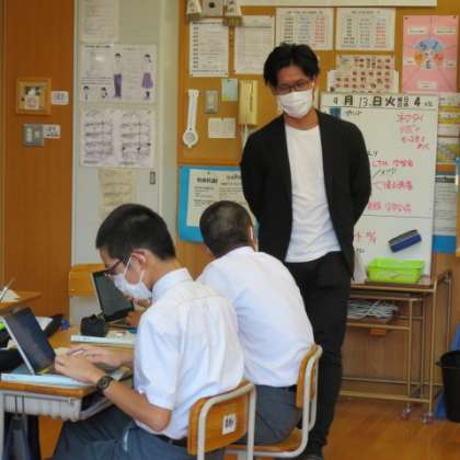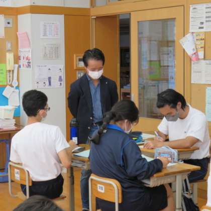 3年生の教室には企業の方が講師として飛び入り参加してくださっています。