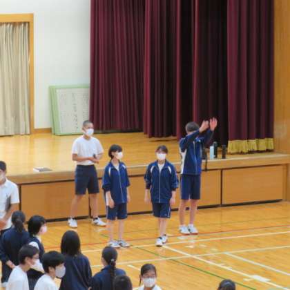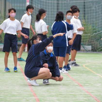屋上グラウンドや体育館など,広い場所が当たっているブロックは,全学年の生徒にリーダーが指示を出しています。