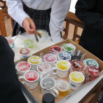 鍋にお湯が煮えていたり,薬品を混ぜたり,美術室はさながら染色工房のような雰囲気でした。