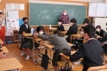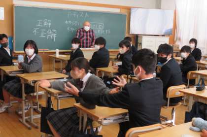 前半はどのクラスもアイスブレーキング代わりのゲームをしています。