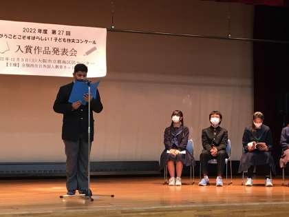 12月3日(土)大阪市内で行われた「第27回ちがうことこそすばらしい子ども作文コンクール入賞作品発表会」の様子です。
