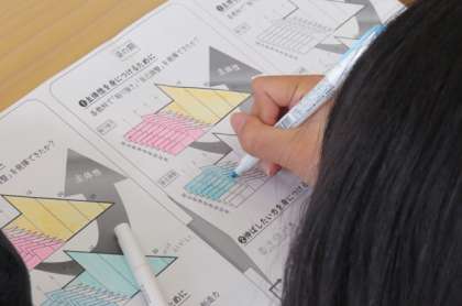 1年生は4時間目の総合で学びの地図を記入していました。