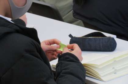 明日から始まる公立高校の前期試験の事前指導が地下交流ルームで行われています。