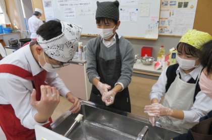 今日は午前・午後ひとクラスずつ、1年生のクラスが和食づくりにチャレンジ。