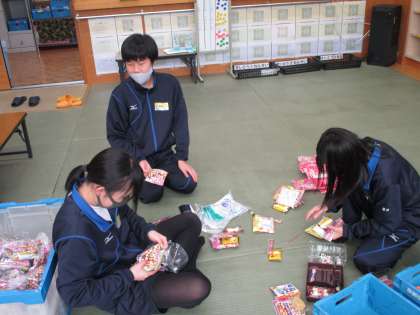 【2枚目】ひな祭りに向けた児童館でのお菓子つめ