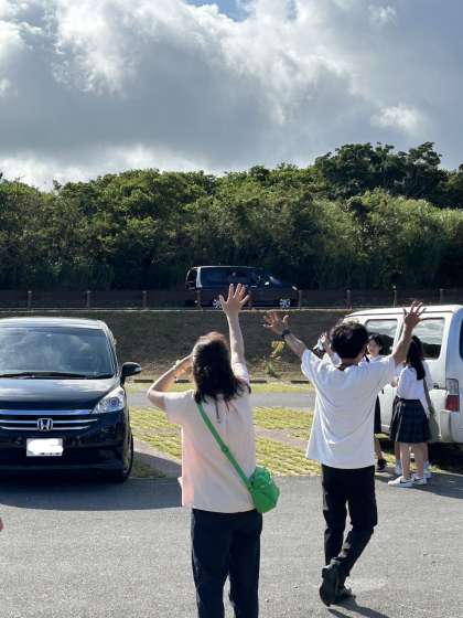 先ほど全ての班を見送りました。みんな結構緊張していましたが、民泊先の皆さんの温かい歓迎で少し打ち解けた雰囲気で出かけて行きました。