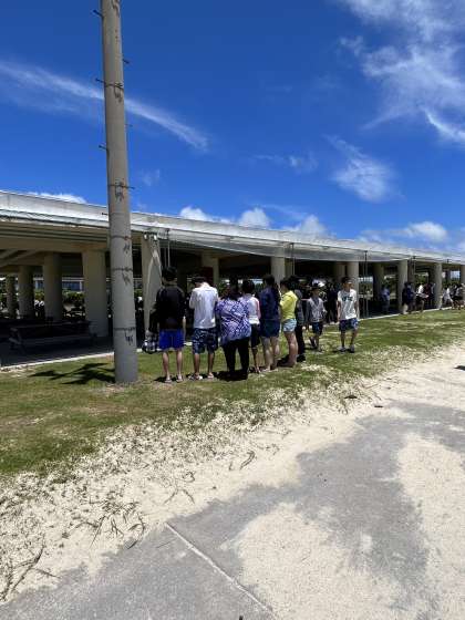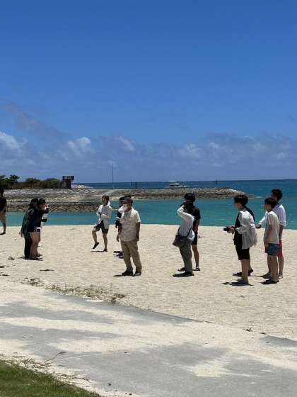 美しい海を背景に記念撮影