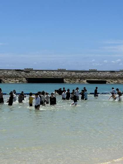 ビーチの浅瀬で水遊び!