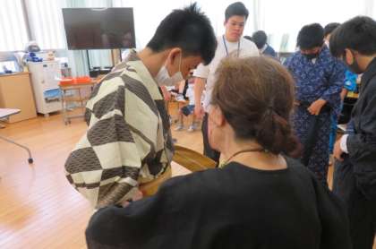 男女に分かれて教わりましたが、帯を巻いているうちに垂れがどこに行ったか分からなくなり…苦戦しながら頑張っていましたよ!
