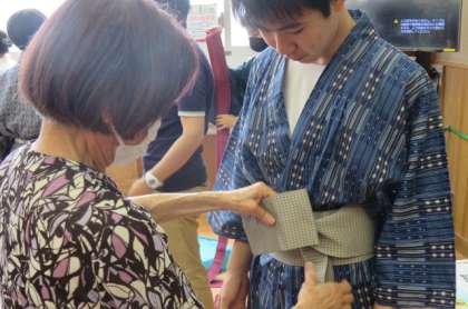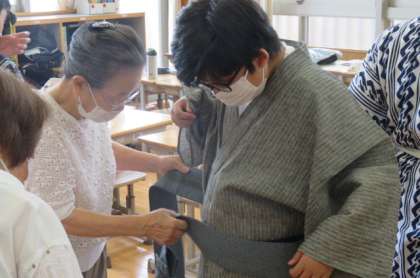 男子も最初は講師の先生方に結んでいただきましたが、そのうち見様見真似でだんだん自分でできるようになってきたようです。