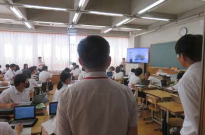 いろいろな教科の先生が自分の教科以外の授業を参観しています。
