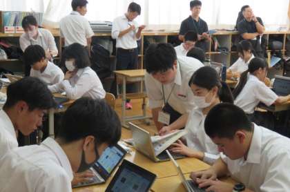 大学院M1の実習中の先生の研究授業が、3年生社会で行われています。