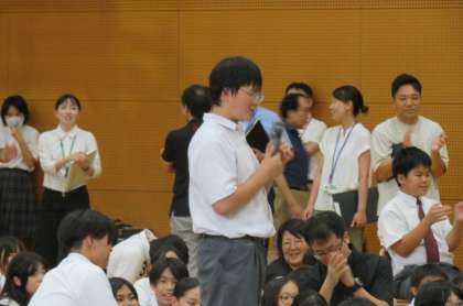 次の吹奏楽部の準備の間、挙手で感想を発言する1、2年生に温かい拍手が送られました。