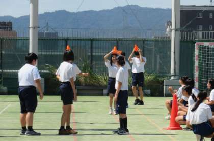 四足歩行やサッカードリブル、スキップ、頭にコーン等々…