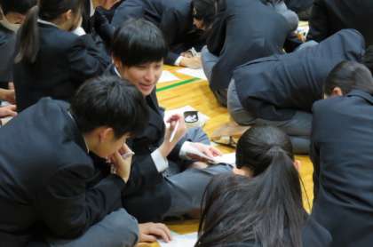 近くの人と話したりワークシートに書込みをしたりしながら、生徒の皆さんは一生懸命聞いていました。