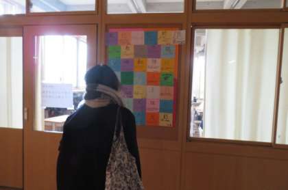 授業の様子だけでなく、廊下や階段掲示板に貼られた作品や「一言」にも、目を留めてくださっていますよ。