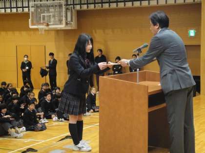 続いて、生徒指導部長からは、「命について深く考える1年であった。どうか無事故で春休みを過ごし、進級し成長した姿で全員が集い、新しい伝統を築いてほしい。」と話しました。