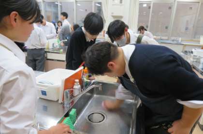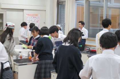 今日は2年生の家庭科で「焼リンゴ」の調理実習が行われていました。