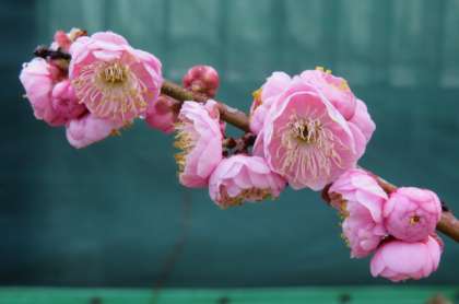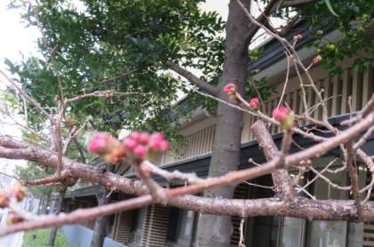 屋上の枝垂れ梅、玄関の桜、水仙。