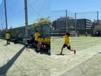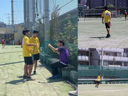 粘り強いプレーと周りの選手たちの応援の声。最後まで勝負がわからない試合でしたが、惜しくも敗退。続く3番手の選手たちも、日差し強いコートを駆け回り、最後まで奮闘しました。どの選手も、終始攻めの姿勢で、素晴らしいプレーでした。
