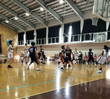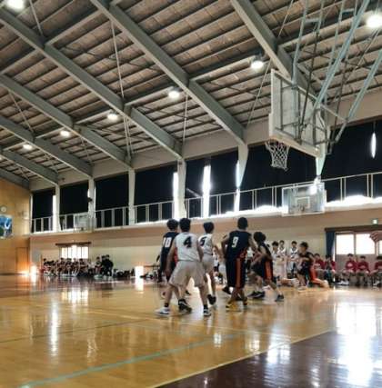 4月28日(日)、松原中学校の体育館で男子バスケットボール部の試合が行われました。対戦相手は松原中学校です。第1ピリオドは、3ポイントシュートなどが決まり接戦。第2ピリオドには、相手のディフェンスのプレッシャーに押され、リードを許す展開となりました。後半には粘り強く戦い、第4ピリオドには点差を詰める追い上げを見せましたが、33−44で残念ながら敗戦。多くの保護者の方々の応援に後押しされ、どの選手も最後まで勝利を目指して一生懸命にコートを駆け回る姿が印象的でした。
